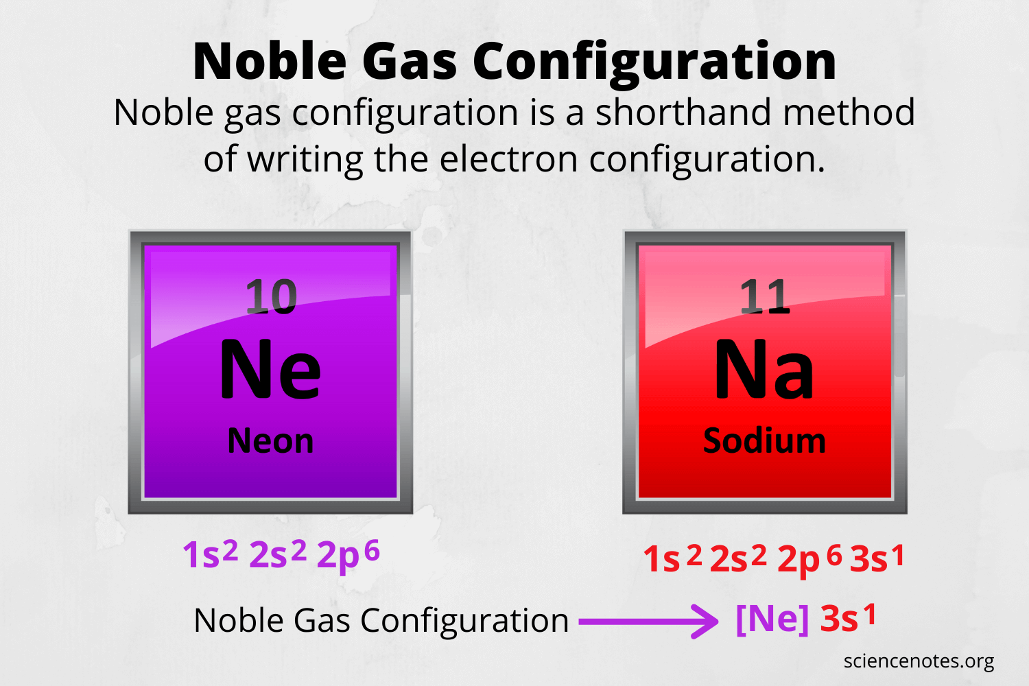Referring to either figure 2.6. In the case of aluminum the abbreviated electron configuration is ne 3s2 3p1. Following hydrogen is the noble gas helium, which has an atomic number of 2.. First, write the electron configuration for the neutral atoms: